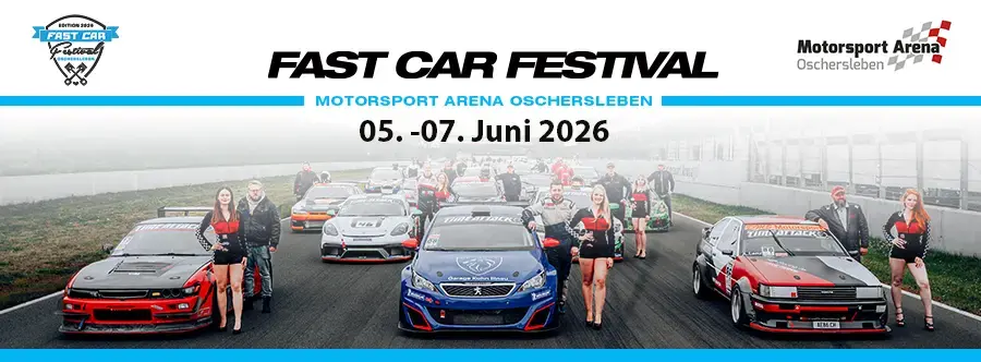 Vom 5. bis 7. Juni 2026 treffen sich wieder Fans und Besitzer von leistungsstarken und getunten Fahrzeugen jeglicher Marken zum "FAST CAR FESTIVAL" in der Motorsport Arena Oschersleben. Als besondere Highlights haben wir in diesem Jahr die Motorsportserien German Timeattack Masters und NATC sowie ein 6 Stunden Bördesprint Rennen im Rahmenprogramm.